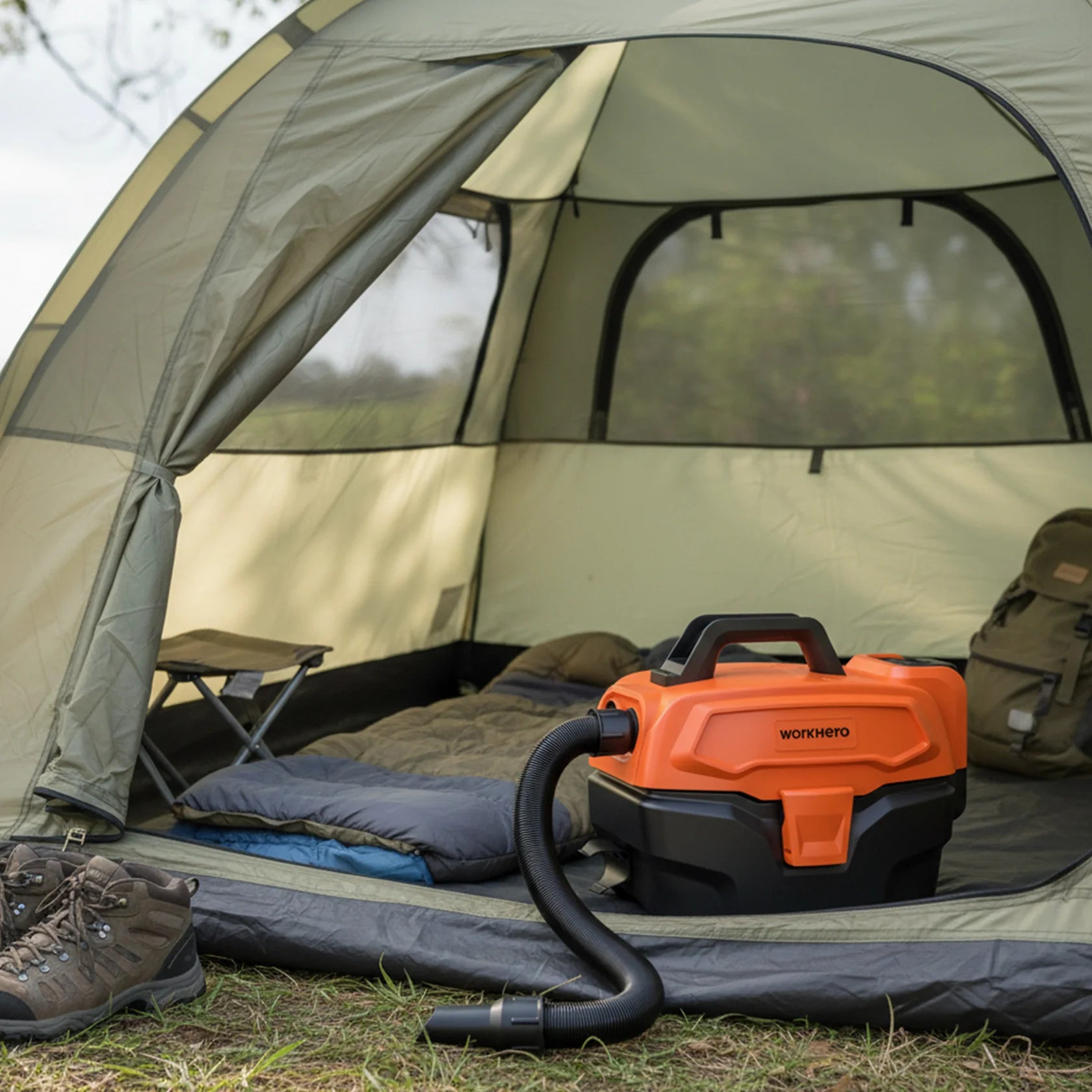 The WorkHero Tradie Wet & Dry Portable Vacuum is a compact, cordless wet & dry portable vacuum with an integrated blower function, designed for on-the-go cleaning. Ideal for car interiors, workshops, and camping use, it combines powerful suction with convenient portability. The Tradie’s durable construction, lithium-ion battery, and HEPA filtration system ensure efficient performance wherever you need it.